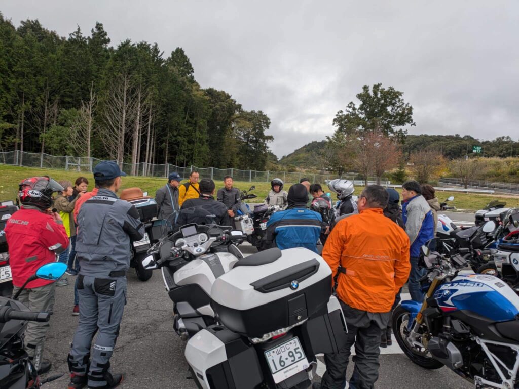 そして道の駅かたのに無事到着。ほかのメンバーも無事に合流し全員が集合。河村会長の挨拶と先導する私(福井)からコース説明の後スタートです。