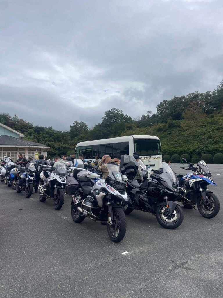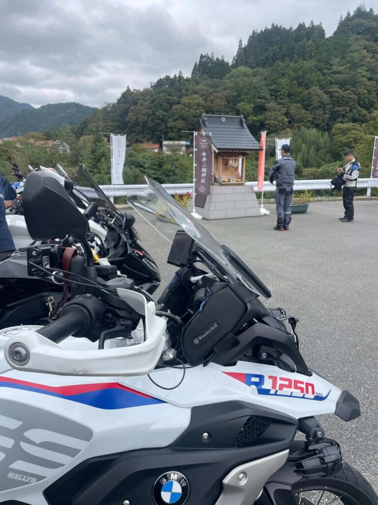 当日広島山口は早朝強い雨でしたがそれにもかかわらず大勢の方に参加いただきました。山陰側は日中曇りで快適なツーリングとなりました。当日はバイク15台、車2台で総勢21名の方に参加いただきました。企画するにあたってのテーマをここ数年島根県内で増えてきたバイク神社巡りとしました。