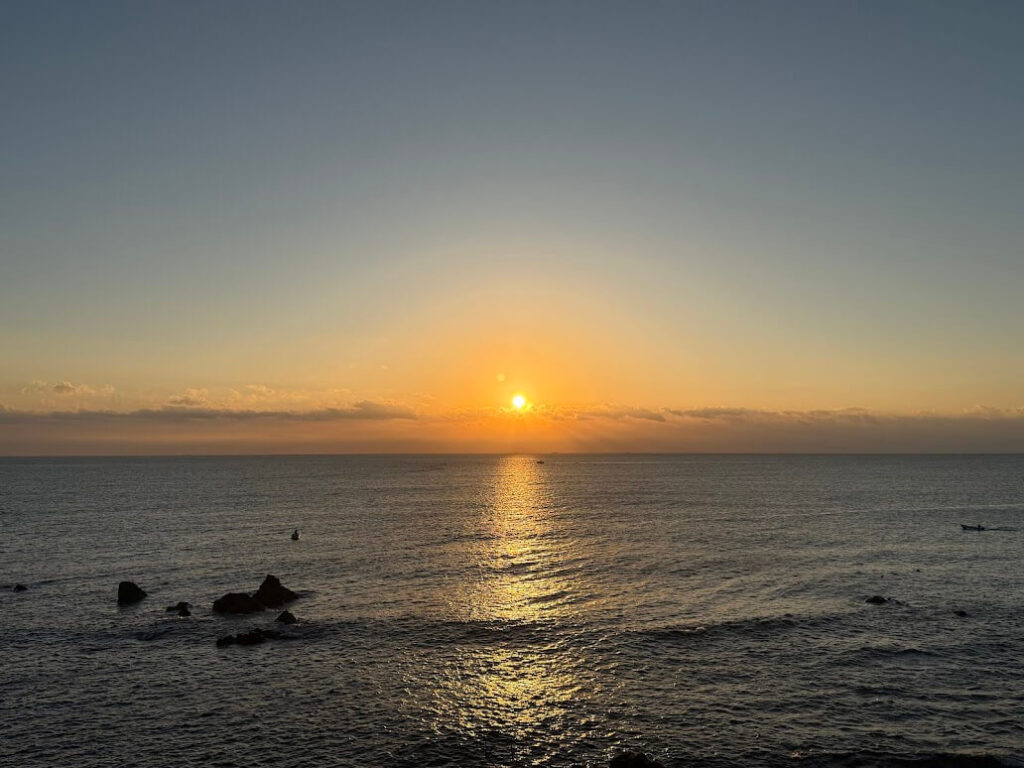 当日の朝そろそろ朝日が昇ってくる頃。雲ひとつない快晴です!