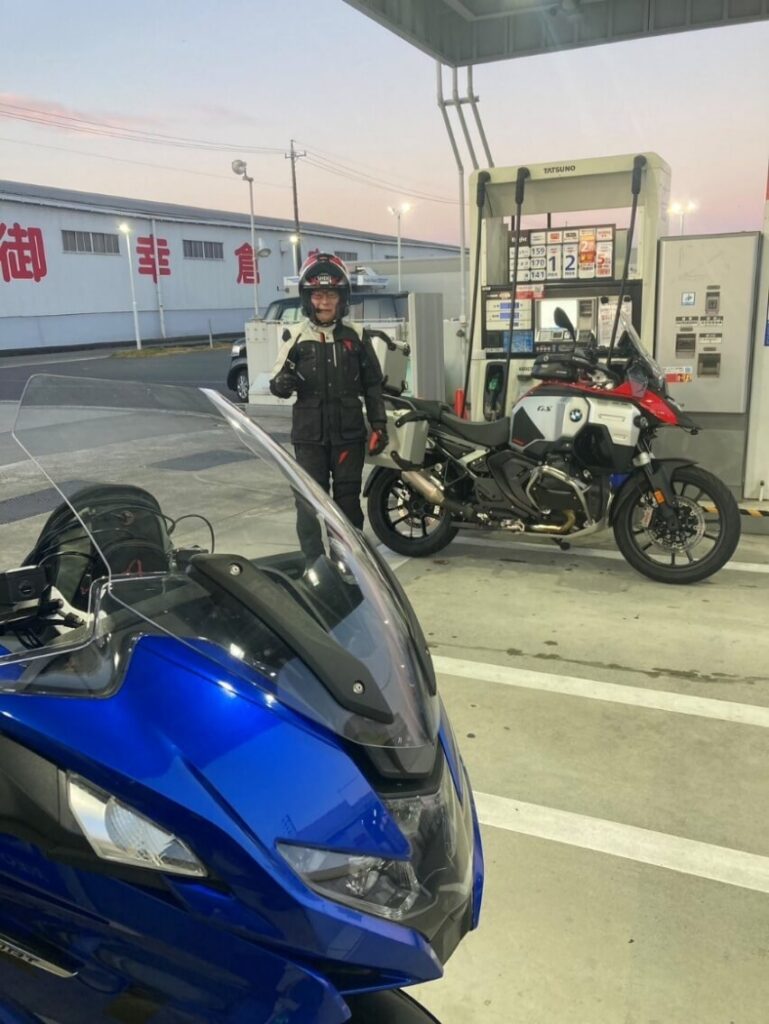 ガソリンスタンドで上瀬氏と待ち合わせ。
