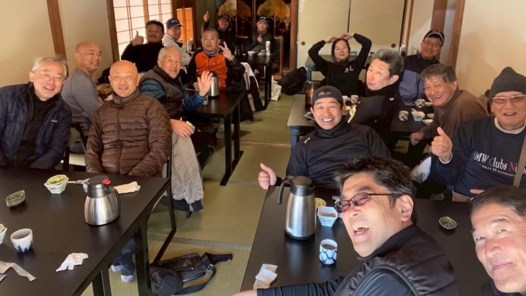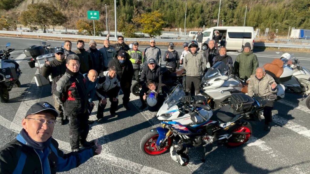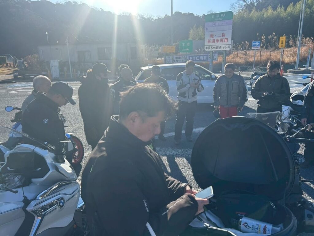 朝9時に君津パーキングエリアに集合です。新しく入ったメンバーの方2名も合流し総勢23名です。