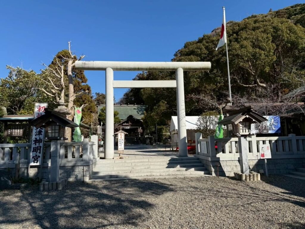 海沿いを少し走り天津神明宮に着きました。バイク神社だそうです。朝早いのと初詣には少し遅いので人もまばらで空いています。
