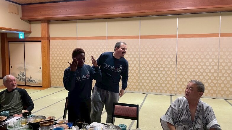 夕食宴会は18時から。それまでが各々自由です。0時会ならぬ 部屋のみが始まったり温泉を普段より長く浸かりくつろぎました。