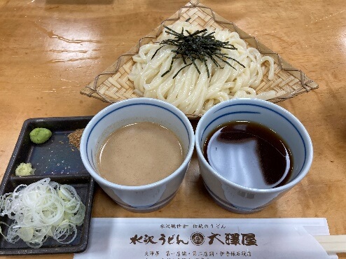 大澤屋は水沢うどんと だしのつけ汁、ごまだれのつけ汁、天ぷらを添えたりした物なと 各自好きなものを注文し、1時間ほどのんびり過ごしました。